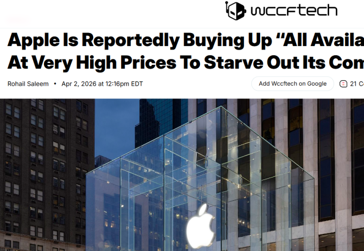据Wccftech报道,苹果正以极高价格囤积市场上所有可用移动DRAM,目的就是阻止竞争对手获取足够芯片。目前这一策略已初见成效:联发科、高通均削减4纳米芯片产量,对应减少1500万至2000万颗移动芯片供应,中低端智能手机市场受影响显著;三星也在韩国上调多款平板及手机售价,间接反映出芯片成本压力。